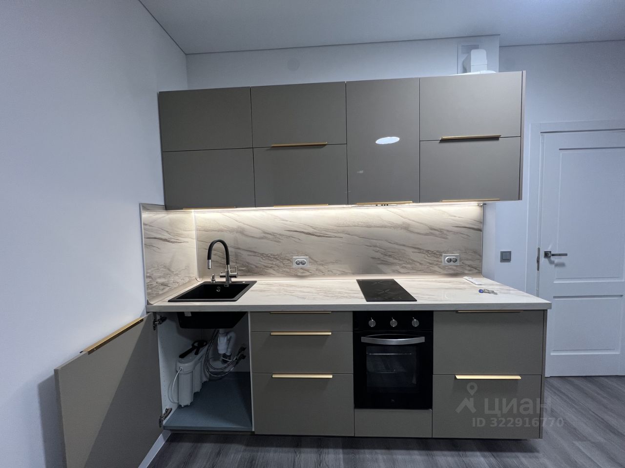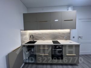 Кухня выполнена в современном стиле. Размер кухонной зоны обеспечивает максимальное удобство в хранении кухонных принадлежностей. Все ящики с доводчиками. Рабочая поверхность достаточно большая, имеется независимая подсветка. Индукционная варочная панель, встроенный духовой шкаф. Гибкий кран с высоким изливом, что упрощает уход за посудой. Встроенный кран для питьевой воды. Вместительный полноценный холодильник Haier.