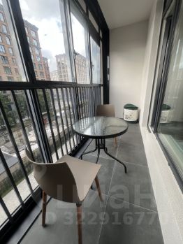 На балконе имеется отдельный стол и 2 дополнительный стула. Квартира полностью оснащена для комфортного проживания одного человека или молодой пары. Дополнительные удобства: система умный дом, видеонаблюдение, теплый пол в ванной комнате.