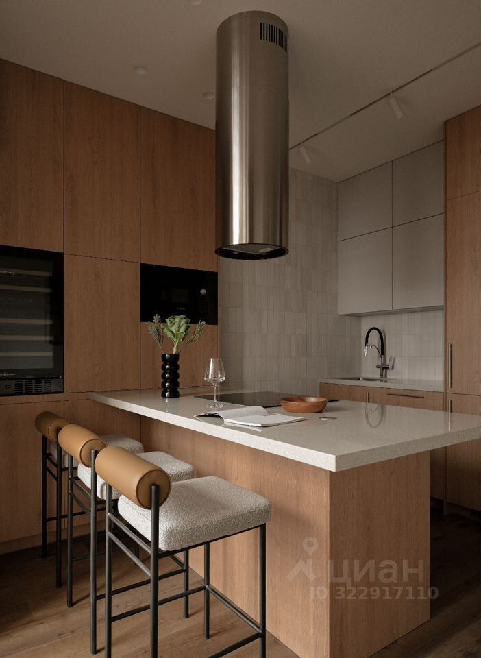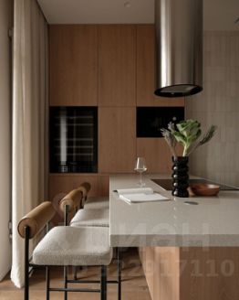 Квартира оборудована всей необходимой бытовой техникой: посудомоечная машина, винный шкаф, холодильник, микроволновая печь, островная индукционная плита, вытяжка, стиральная машина, пылесос.