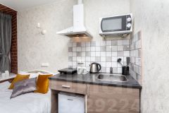 В кухонном уголке можно приготовить лёгкие блюда, а также разогреть блюда из близлежащих ресторанов и кафе, ну и конечно же попить чай/кофе.