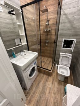 Проведён интернет. В ванной комнате современная душевая, зеркало, стиральная машинка.