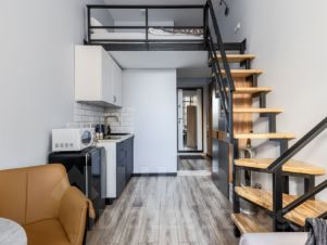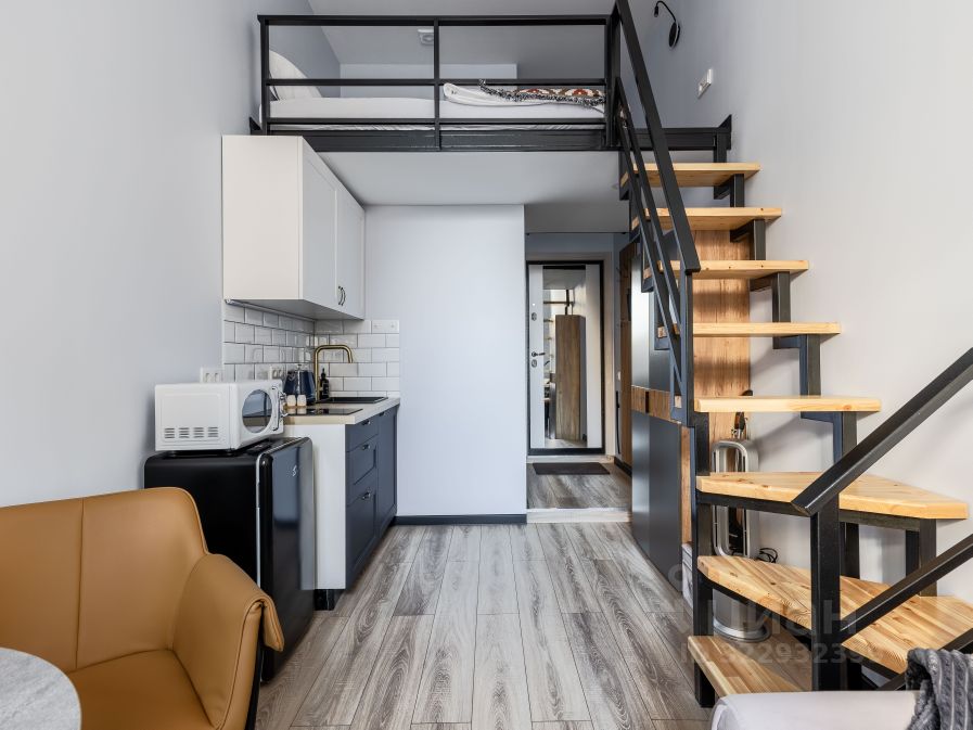 Площадь студии - 15 м² + 4 м² второго яруса.