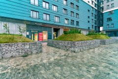 Прямо за домом набережная Финского залива, которая практически благоустроена. Осталось совсем немного, но уже можно гулять и любоваться видом залива
