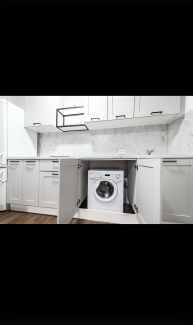 Кухня полностью оборудована: плита, холодильник, стиральная машина.