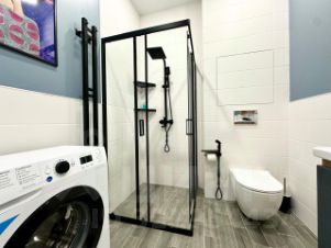 Есть все самое необходимое - современный ремонт, бытовая техника, посуда, постельное белье и полотенца, фен, утюг с гладильной доской, интернет и т.п.