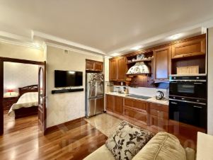 - Ремонт в квартире делали для себя, не для сдачи в аренду! Пол- паркетная доска и натуральный камень! Дорогая и качественная мебель! Двери - натуральное дерево!