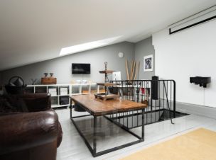 Вдохновляющий интерьер дает право на размеренную, но распланированную жизнь. Двухуровневая квартира расположилась на последнем этаже и заняла еще немного места под крышей. Практичное использование каждого метра квартиры убирает ненужные длинные неиспользуемые коридоры и наделяет функцией каждый уголок.