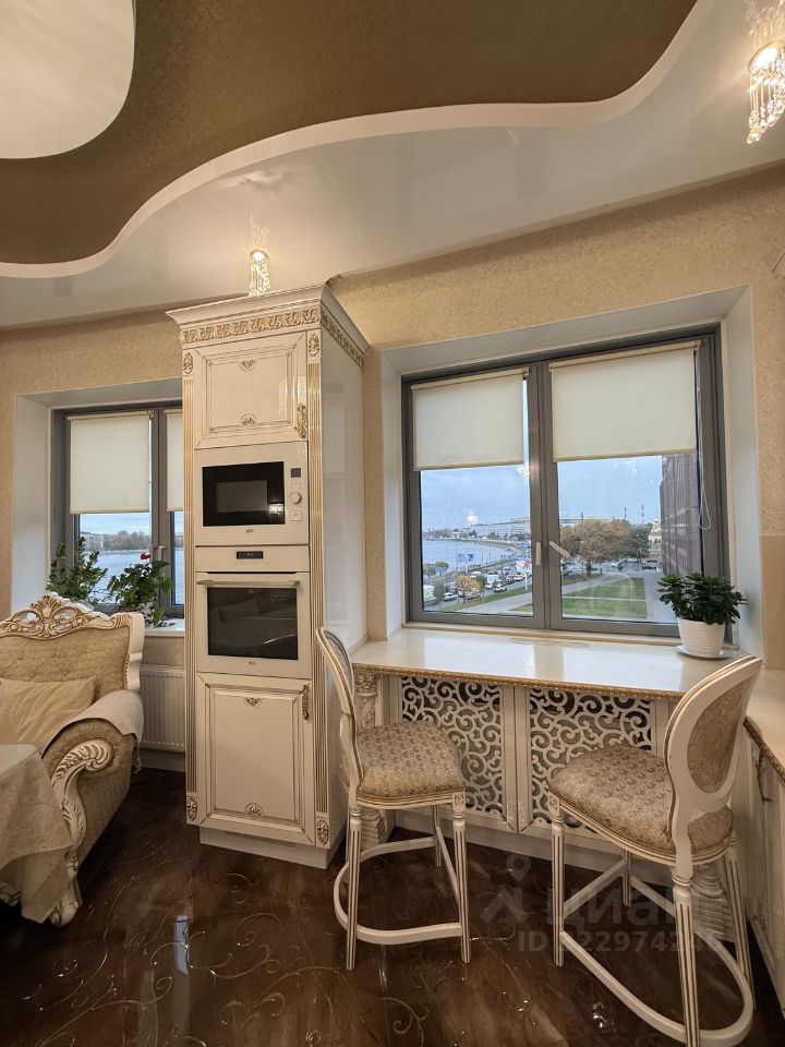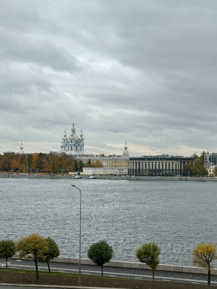 Из всех окон квартиры открывается прекрасный вид на набережную Невы, Смольный собор и панораму исторического центра города.