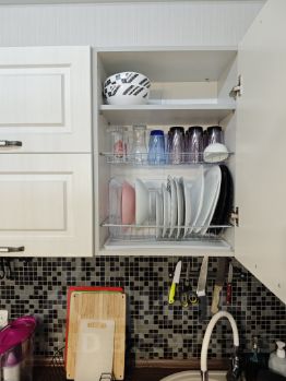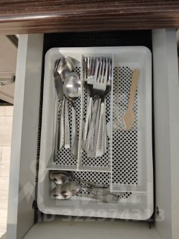 Так же присутствует достаточно большая гардеробная комната. Есть напольная сушилка и гладильная доска, а так же пылесос. В квартире есть постельное белье, пледы