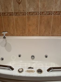 В ванной: унитаз, ванна-джакузи ,стиральная машина вертикальной загрузки.