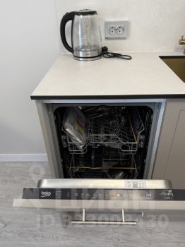 Установлены фильтры для воды, диспенсер для жидкого мыла, есть сушилка для белья и гладильная доска, посуда, набор кастрюль, сковородок Tefal, приборы и кухонная утварь.