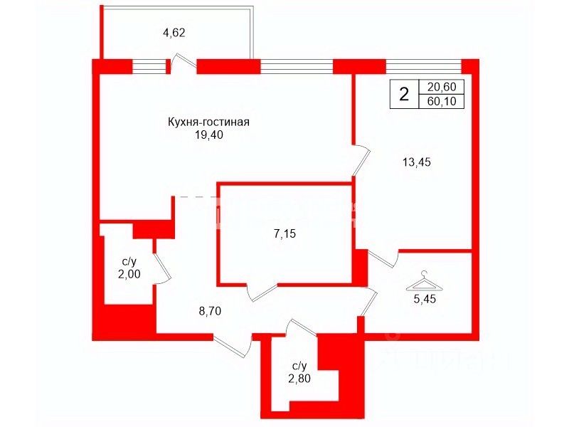 Общая площадь60,1 м²