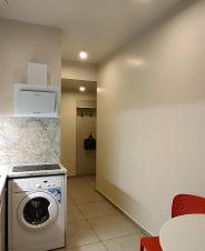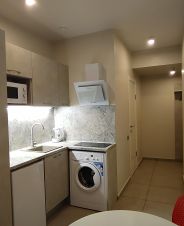 Встроенная кухня, стиральная машина, холодильник, э/чайник, кухонный гарнитур, индукционная плита, вплоть до посуды.