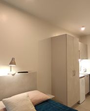 Есть место под хранение вещей, огромный шкаф и место под кроватью.