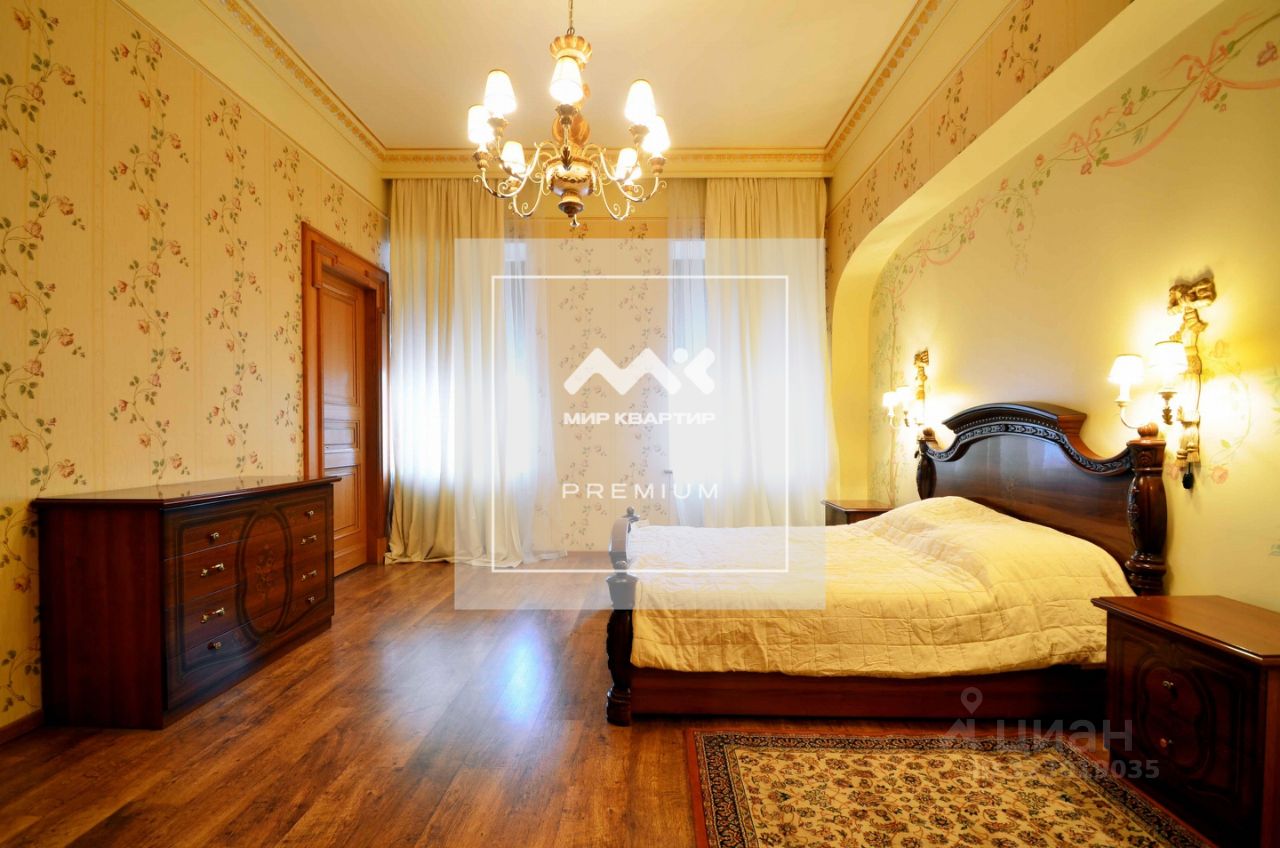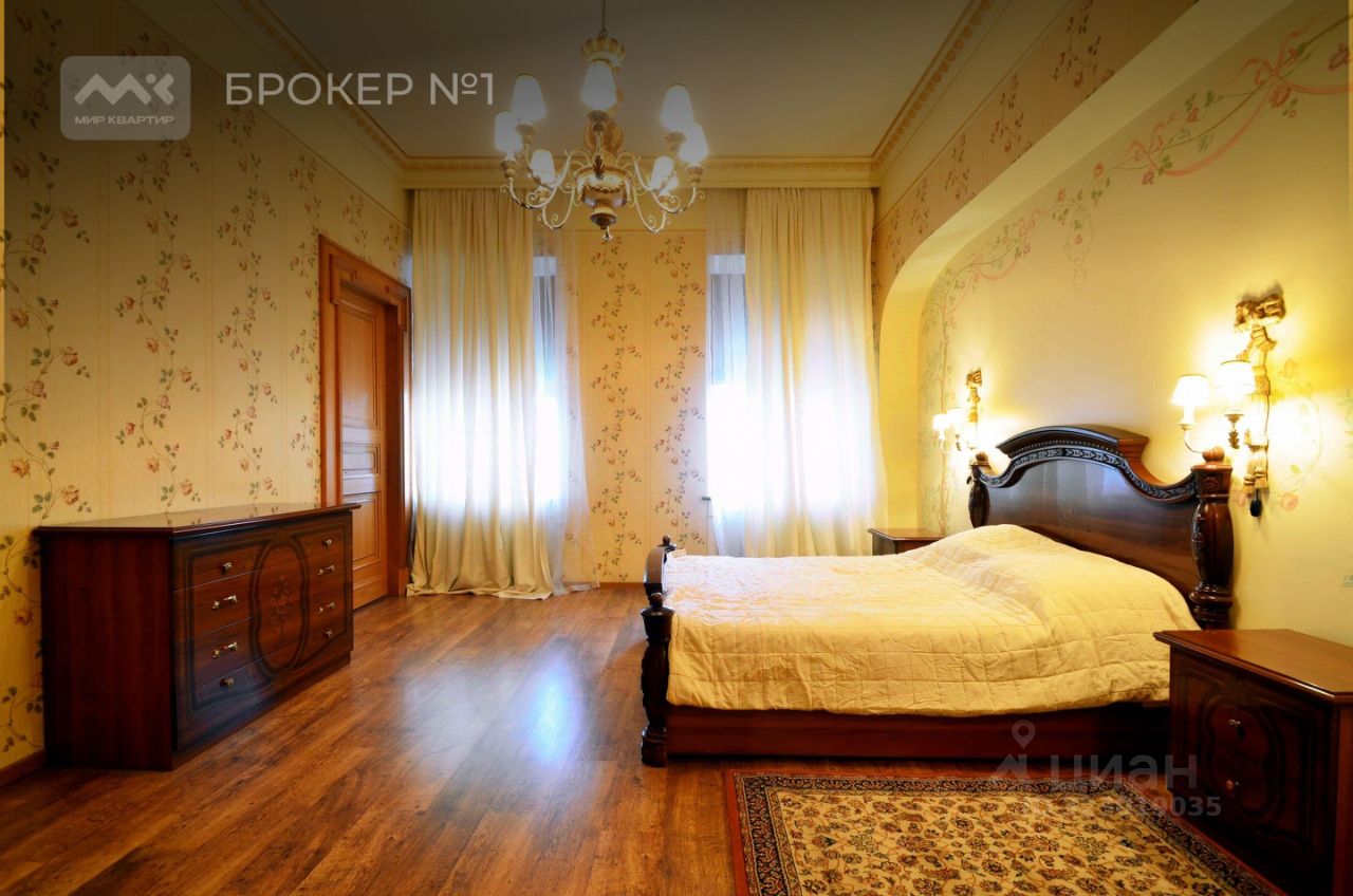 Арт. 3368284 Предлагается в аренду великолепная 5-комнатная квартира в "Золотом треугольнике", на Малой Конюшенной ул.! Дом является частью ансамбля зданий лютеранской Петропавловской церкви и находится в одном из красивейших мест Петербурга. Это первая пешеходная улица нашего города с прекрасными памятниками, уникальными уличными часами, зеленым бульваром, скамейками для отдыха и клумбами. Эрмитаж, Русский музей, Филармония, Дом книги - находятся поблизости. Тенистый Михайловский сад, тихие набережные живописной Мойки и канала Грибоедова в пяти минутах ходьбы. Во дворе располагается старейшая гимназия Петербурга - Петершуле. Квартира расположена на 4 из 5 этажей. Парадный вход, лифт, консьерж. Общая площадь 230м2, четыре изолированные комнаты, гостиная с действующим камином и изолированная кухня. Отличное состояние - качественный ремонт в классическом стиле. Два полноценных санузла. Имеется хозяйственная комната и две гардеробные. Из окон открывается изумительный вид на Казанский собор, церковь Св.Петра, зеленый бульвар улицы. Часть окон обращена в благоустроенный тихий двор. Очень удобная планировка, комнаты светлые, просторные. Закрепленное парковочное место во дворе.