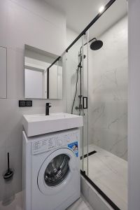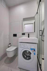 - Современная бытовая техника: фен, стиральная машина, утюг, гладильная доска.