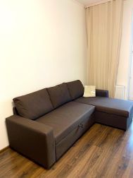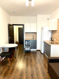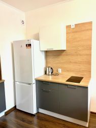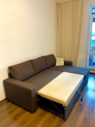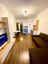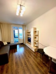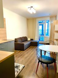 В квартире есть все необходимое для комфортного проживания: раскладной двуспальный диван с атаманкой, стенка со шкафом, кухонный раскладной стол, телевизор диагональ 112 см , холодильник, посудомоечная машина. Застекленная лоджия площадью 4 м.кв. Квартира очень тёплая. В доме есть подземный паркинг, гостевая парковка. Внутри жилого комплекса реализована комфортная среда - двор без машин. Территория ЖК закрыта и охраняется службой охраны, в подъездах и лифтах камеры видеонаблюдения. На территории ЖК есть детские площадки, зоны для занятий спортом для взрослых, велопарковки, коммерческие помещения.