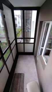 Окна выходят во двор, что обеспечивает тихую и спокойную обстановку в квартире.