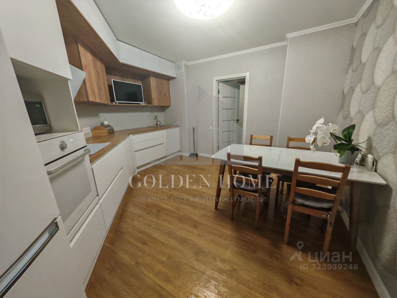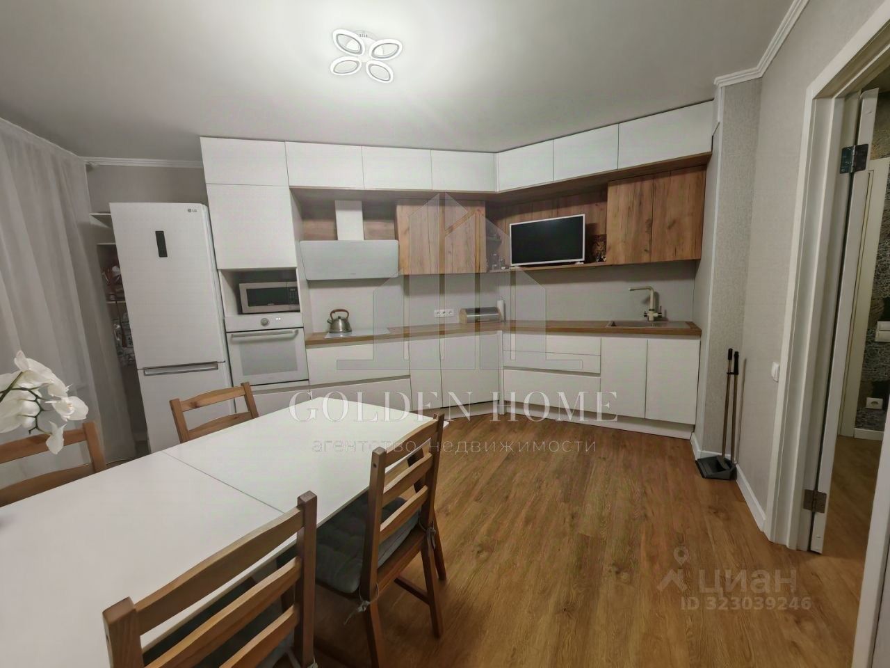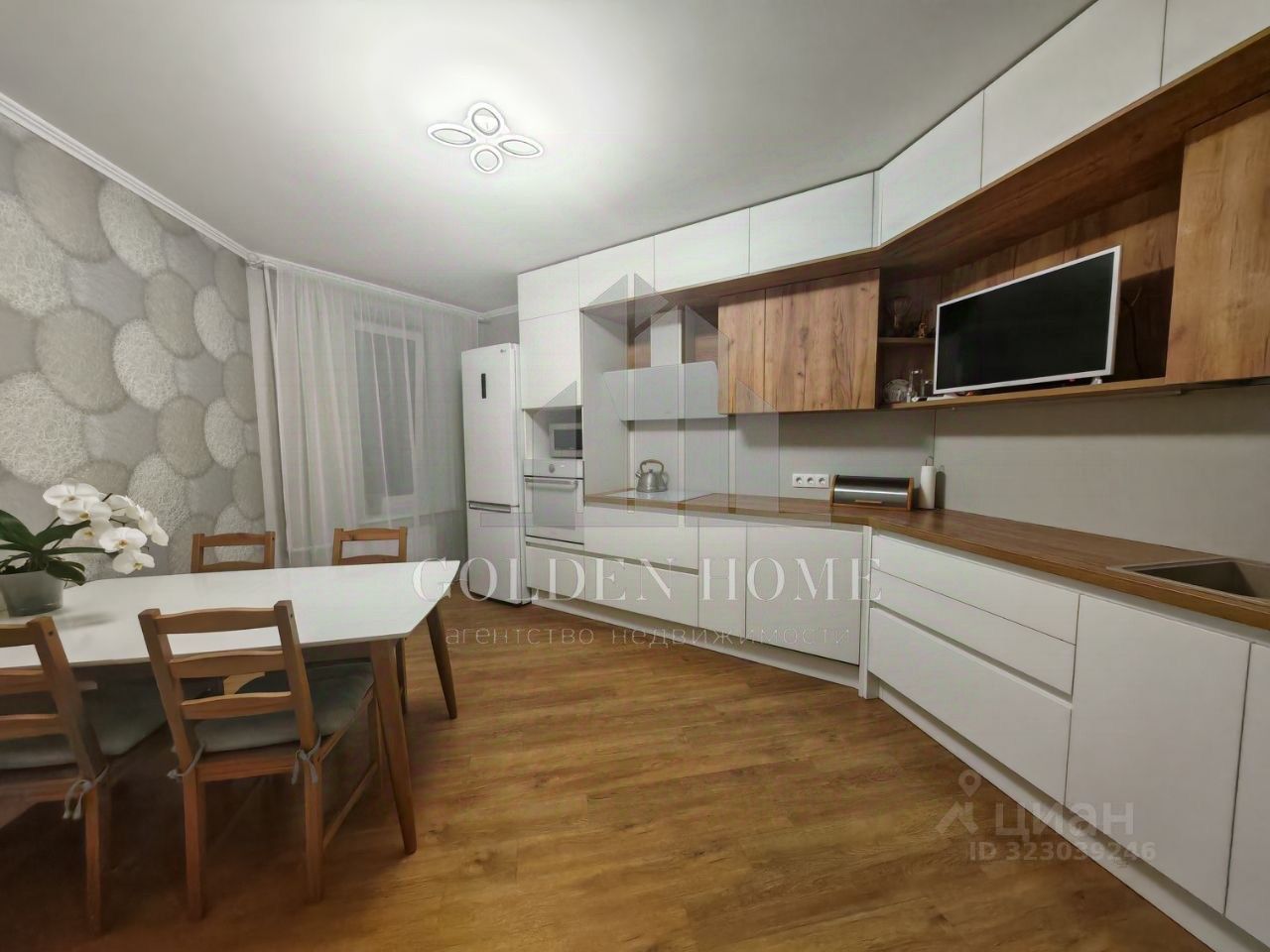 Вместительная кухня оборудована всей необходимой техникой (духовой шкаф, индукционная плита, холодильник, чайник, посудомоечная машина, микроволновая печь, телевизор, проточный фильтр для воды Аквафор, 4 ступени очистки). На кухне большой раздвижной обеденный стол, за которым комфортно разместится от 6 до 10 чел.