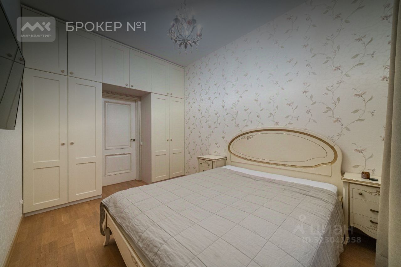 В квартире площадью 86 квадратных метров есть уютная спальня, просторная детская для двоих детей, гардеробная, два санузла, гостиная с удобным диваном совмещенная с кухней с современной техникой.
