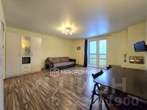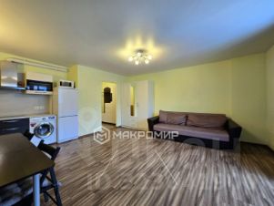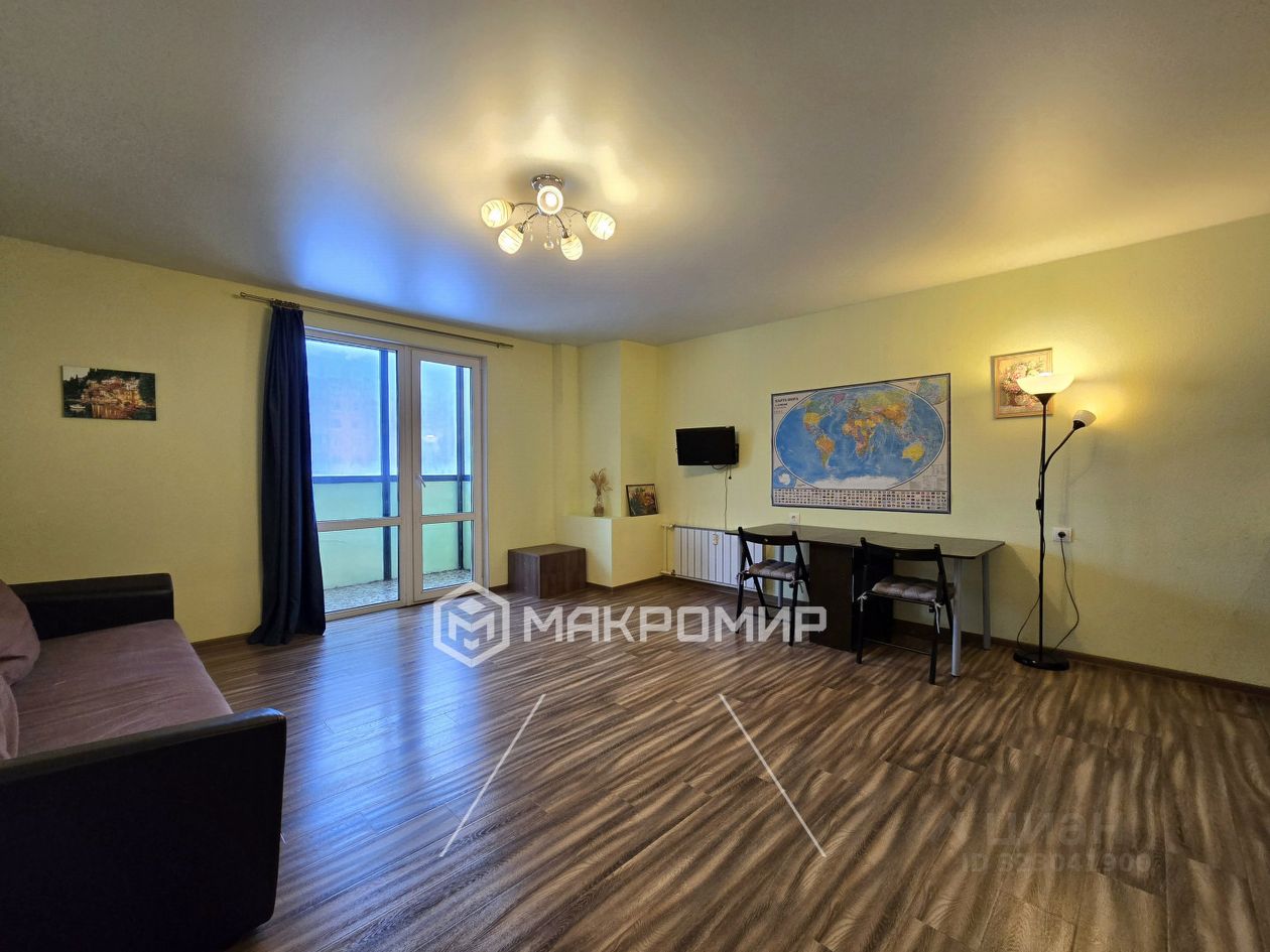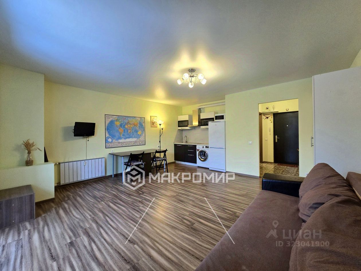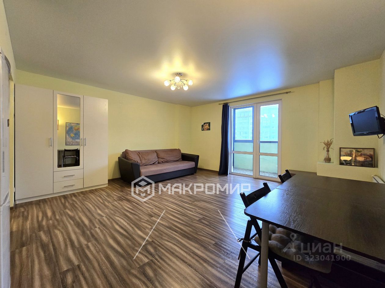 Современная просторная студия с действительно комфортной планировкой: просторная комната с выходом на балкон и встроенной кухней, в которой прекрасно поместится семья из трех человек. В квартире просторные санузел и прихожая!