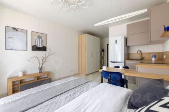 В квартире сделан дизайнерский ремонт, который подчеркнет ваш вкус и обеспечит комфортное проживание. Пространство студии продумано до мелочей: здесь есть вся необходимая мебель как на кухне, так и в комнате. Квартира оборудована современной техникой — имеется холодильник и стиральная машина. В ванной комнате установлена душевая кабина, что добавляет удобства и функциональности.