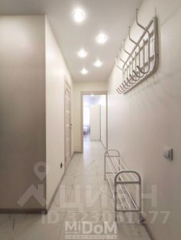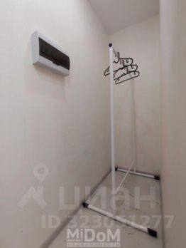 Новый зеркальный шкаф в комнате. В коридоре рейлинг с вешалками.