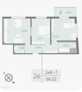 Квартира состоит из просторной кухни-гостиной, спальни с полноценной двуспальной кроватью, кабинета/спальни с раскладным диваном, двух санузлов и лоджии с окнами на две стороны.