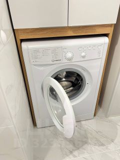 Стиральная машина Indesit , средство для стирки, сушилка для белья, доска и утюг.