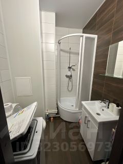 В ванной тёплый пол, душевая кабина, стиральная машина.