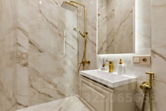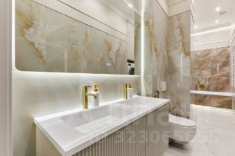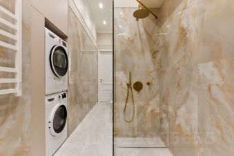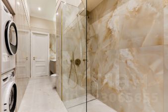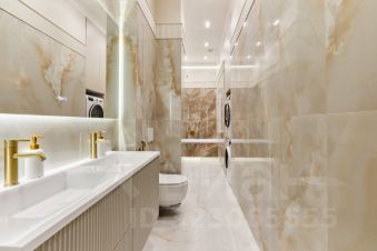 Общая площадь жилья — 90,1 кв.м. Пространство спланировано эргономично и удобно для жизни: две комфортабельные спальни, одна из которых cо своей ванной комнатой и гардеробной; вторая спальня оборудована гардеробной; просторная кухня-гостиная; вторая ванная комната с постирочной зоной.