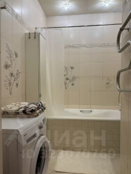 В ванной комнате установлена стиральная машина и шкаф с зеркалом в пол.