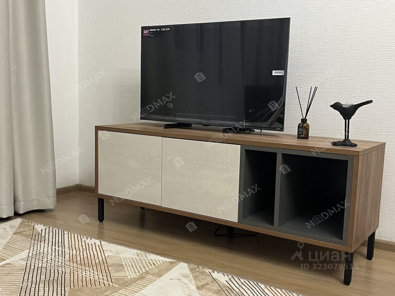 Уютная гостиная с ТВ, большим диваном, стильной мебелью