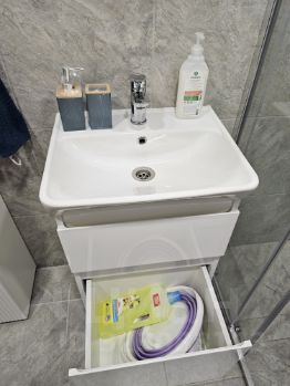 В ванной душевая кабина, шкаф, сантехника отличная.