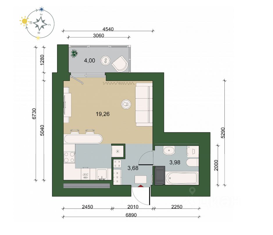 Сдам студию в ЖK Уютный нa длительный cpок.