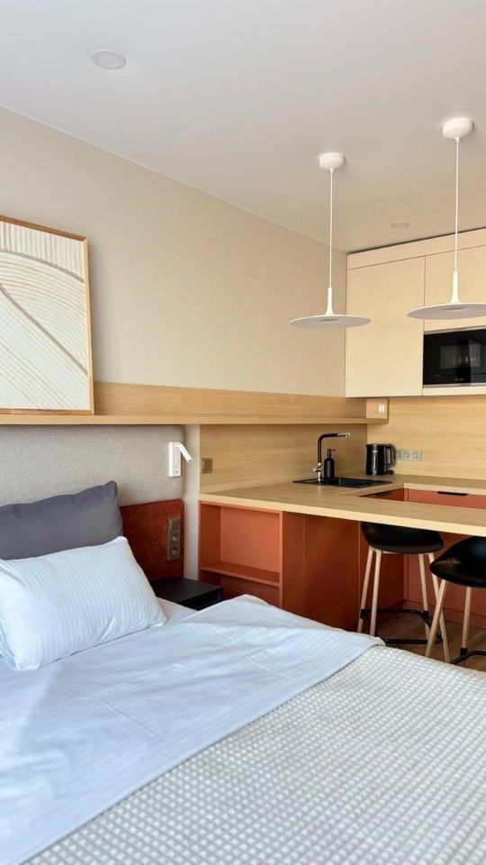 варочная панель и СВЧ, посуда, вы с лёгкостью сможете приготовить завтрак или обед