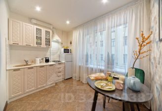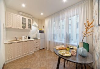 Общий метраж 40 кв.м. Интересная, комфортная, полностью благоустроенная квартира с качественным ремонтом и нестандартными планировочными решениями интерьера. Просторная комната разделена на две зоны комфорта: спальню с кроватью king-size с ортопедическим матрацем и гостиную. Для Вас - вся необходимая бытовая техника и предметы обихода: ЖК-телевизор, холодильник, газовая плита, микроволновая печь, электрочайник, кофеварка, стиральная машина, фен, утюг с гладильной доской, кухонные, постельные, туалетные принадлежности и средства гигиены. На кухне оборудованы полы с подогревом.