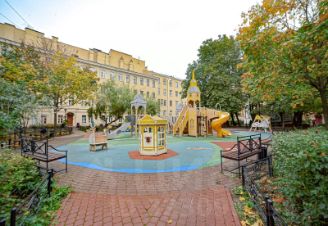 Находятся на 3 этаже пятиэтажного дома с лифтом. Закрытый просторный, ухоженный, зеленый двор с детской площадкой и видеонаблюдением. Вход со двора. Хороший подъезд. Окна кухни-столовой выходят во двор, гостиной и спальни - на тихую Пушкинскую улицу. Во дворе можно припарковать машину ( под залог выдается пульт от ворот).