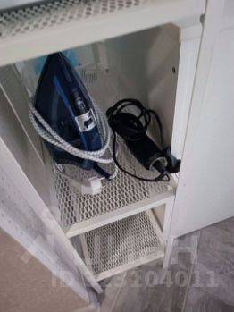 Встроенная кухня с техникой. Столы кухонный и рабочий. Два стула с чехлами. Пуфик. Вешала для размещения одежды и малый узкий шкаф. Две тумбы. Мелочи - вилки, ложки, тарелки, сковородки, кастрюли и подушки, одеяла, белье.