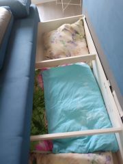 В квартире все есть для жизни. Кухонный гарнитур с электрической плитой, компактный, небольшой холодильник, двухспальной диван, раскладной стол и стулья, стулья, место для вещей и обуви, в ванной стиральная машина , полно размерная ванная, раковина с навесной тумбой и конечно унитаз.