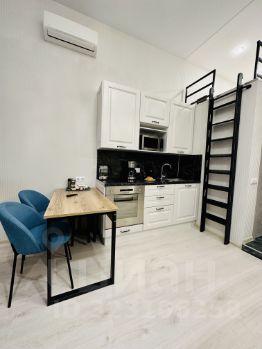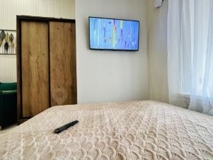 Студия выполнена в дизайнерском стиле, что придаёт ей уникальный характер и уют. В квартире есть вся необходимая мебель как на кухне, так и в комнате, а также современная техника: кондиционер, холодильник, телевизор и стиральная машина. Санузел совмещённый и оборудован душевой кабиной. Это идеальное место для комфортного проживания.