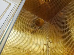Мраморные полы, лепнина ручной работы и золотая отделка придают помещению исключительную роскошь и элегантность.