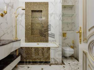 Детские комнаты полностью оборудованы мебелью и системами хранения, а мастер-спальня располагает собственной гардеробной и SPA-зоной с гидромассажной ванной и золотой душевой кабиной.