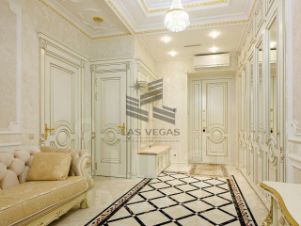 Интерьер квартиры выполнен по индивидуальному проекту, с использованием дорогостоящих материалов и передовых технологий.