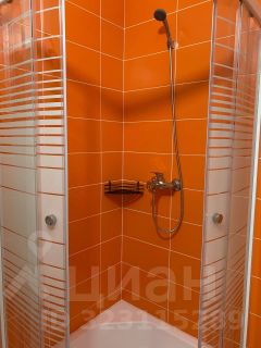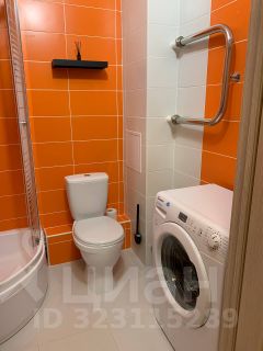 Совмещенный санузел с душевой кабиной и стиральной машиной.