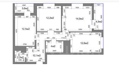 Комната 3 - 12,5 м2 (если не нужна кровать её можно легко раскрутить и убрать на балкон)
