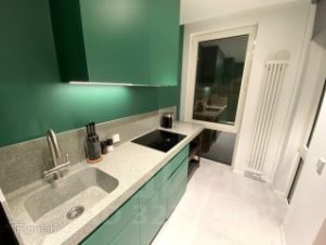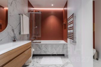 Ремонт выполнен по дизайн проекту с использованием дорогих материалов. На полу дорогой качественный паркет, импортная мебель и бытовая техника, все в квартире сделано под заказ.