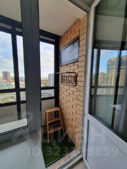 Кухня-гостинная: полный кухонный гарнитур с электрической плитой и духовкой, вытяжкой, микроволновкой, холодильником. Раковина со встроенным фильтром для воды. Установлен кондиционер, несколько источников освещения. В гостиной стоит раскладной диван (дополнительное спальное место), электрический камин. Лоджия с местами для хранения, шкаф-купе в прихожей.