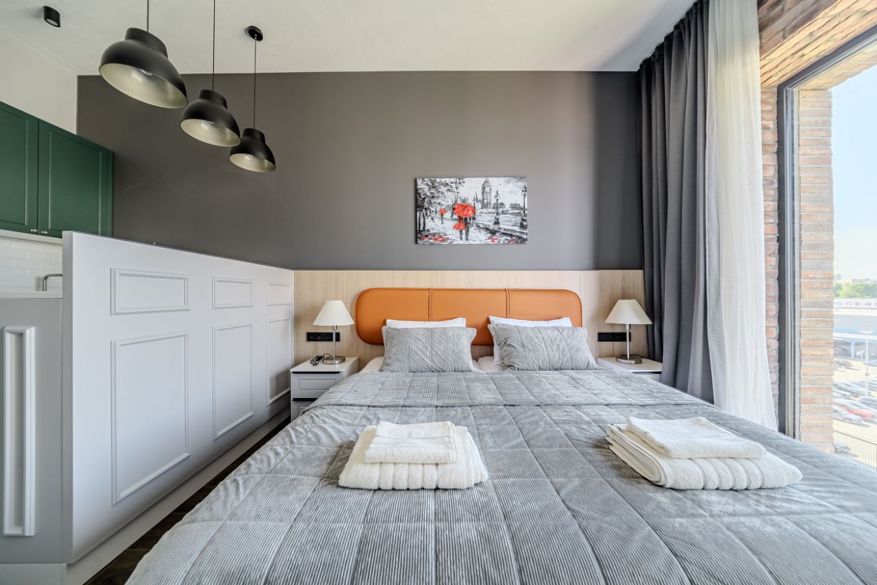 Студия полностью укомплектована всем необходимым для комфортного проживания.