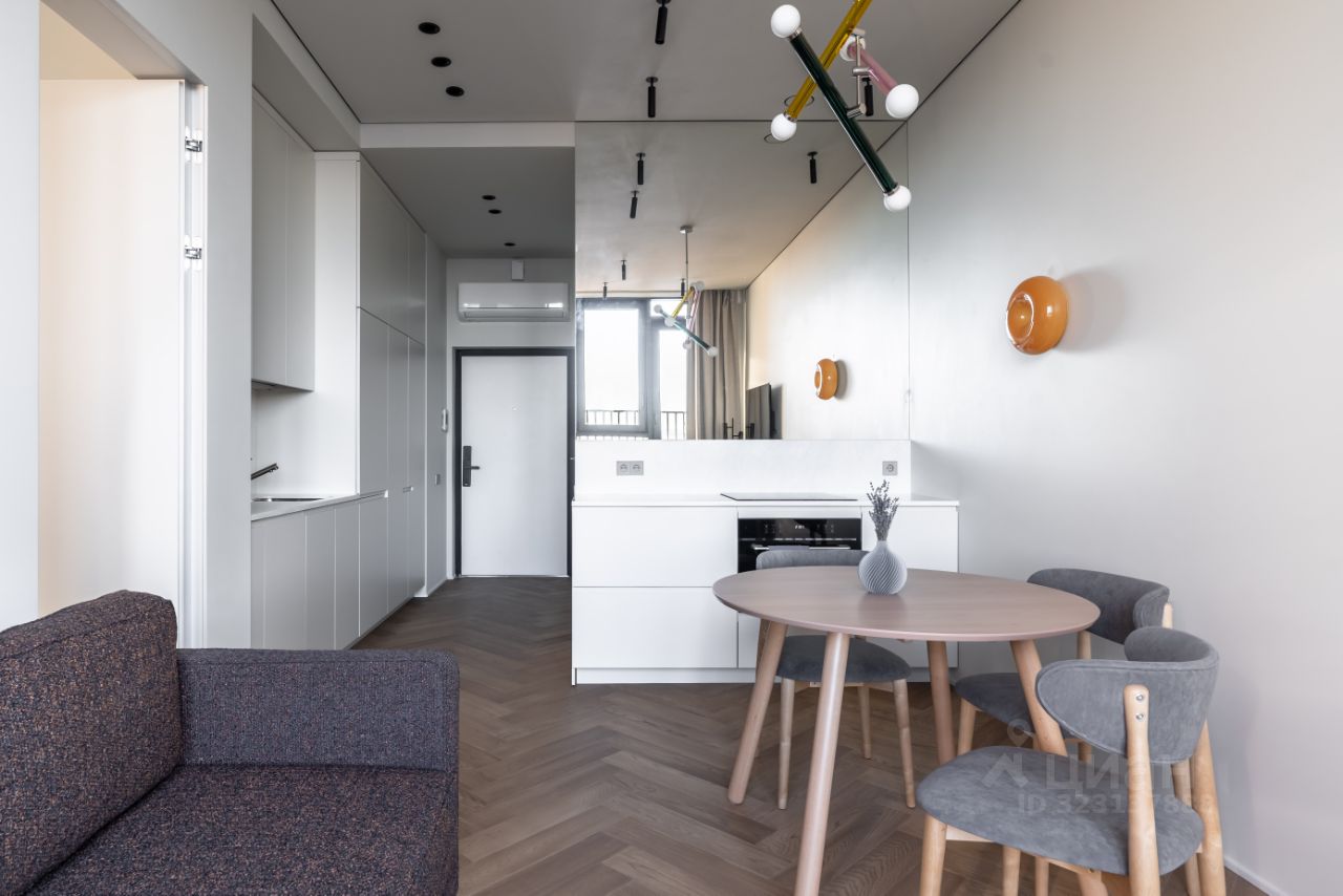 - Кухонная зона с панорамным зеркалом. Духовка/микроволновая печь, варочная поверхность, холодильник,посудомоечная машина.